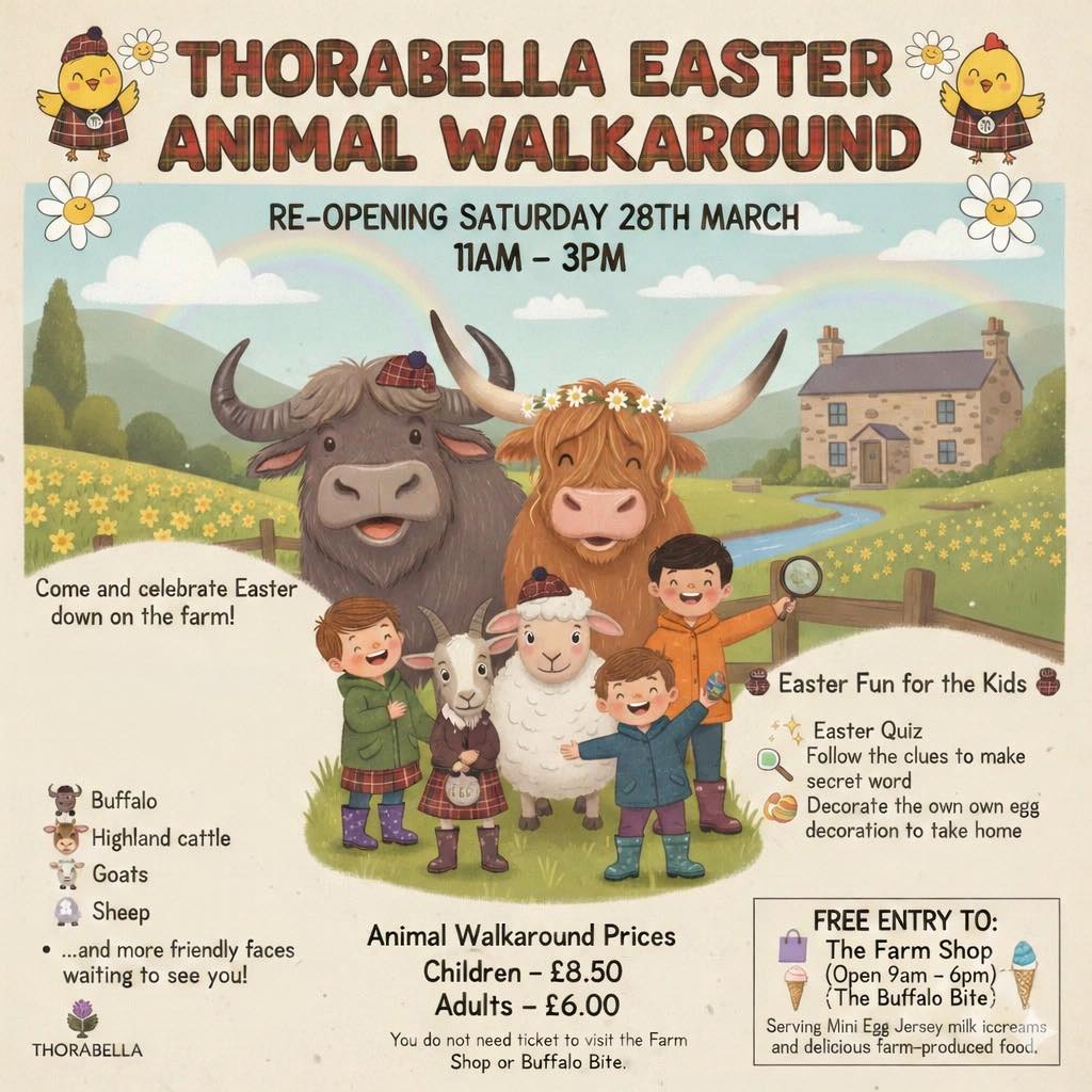 We love our farm and our animals .. and hope you do to. Open daily come and visit us for a walkaround of our farm & meet our buffalo, highland cows, goats, sheep & many more.